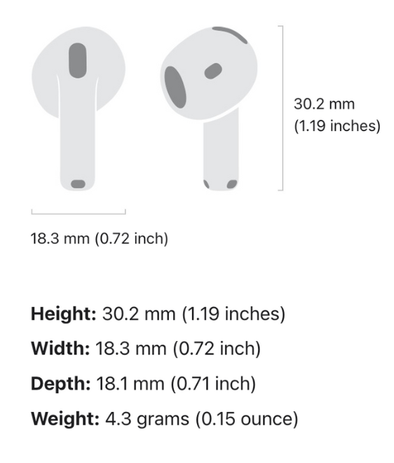 Weight (AirPods 4): 32.3 grams (1.14 ounces)