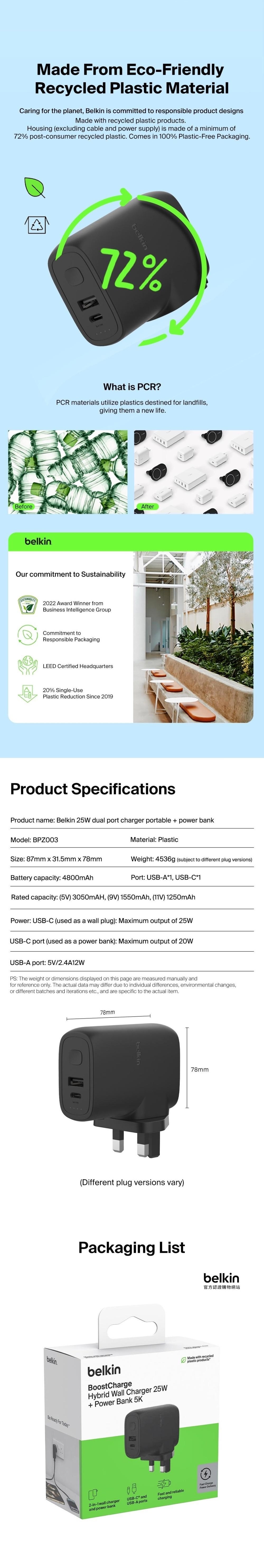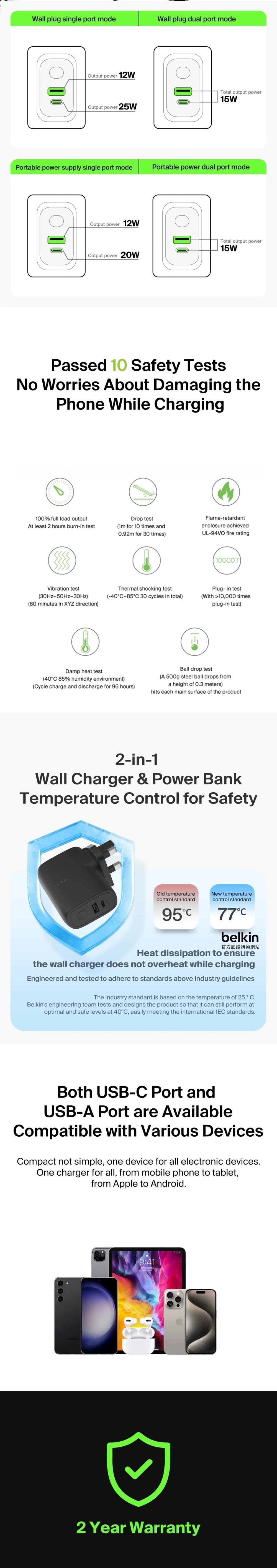 Our Hybrid Wall Charger 25W + Power Bank 5K is the perfect travel companion. It’s a super-compact portable charger that features a USB-C® and USB-A charging ports. The integrated PD3.0 PPS technology provides safe high-speed charging to almost all USB and PD-enabled devices.