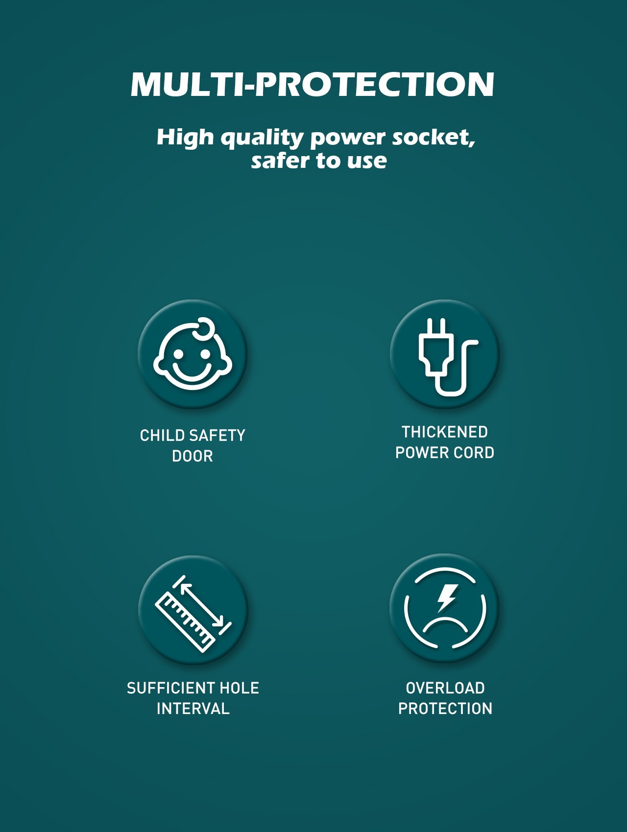 2M heavy-duty power cord can flow optimal power to connected devices.