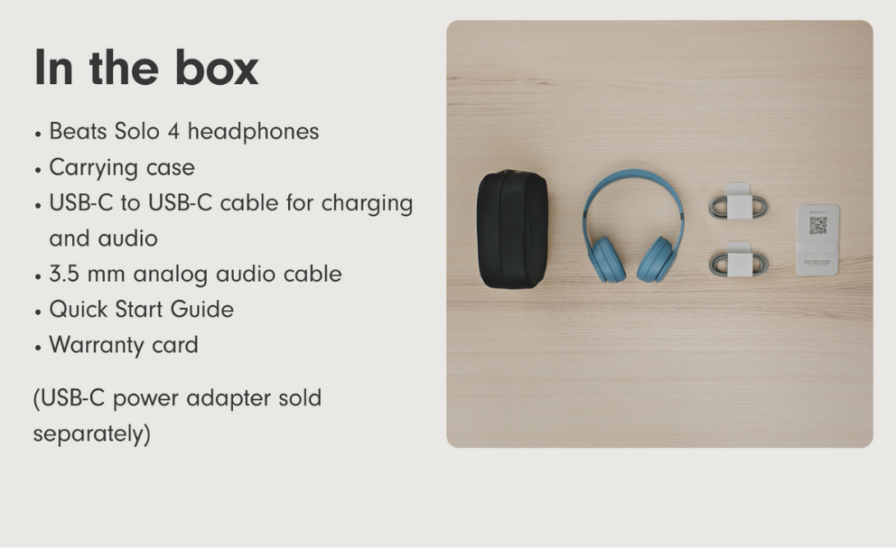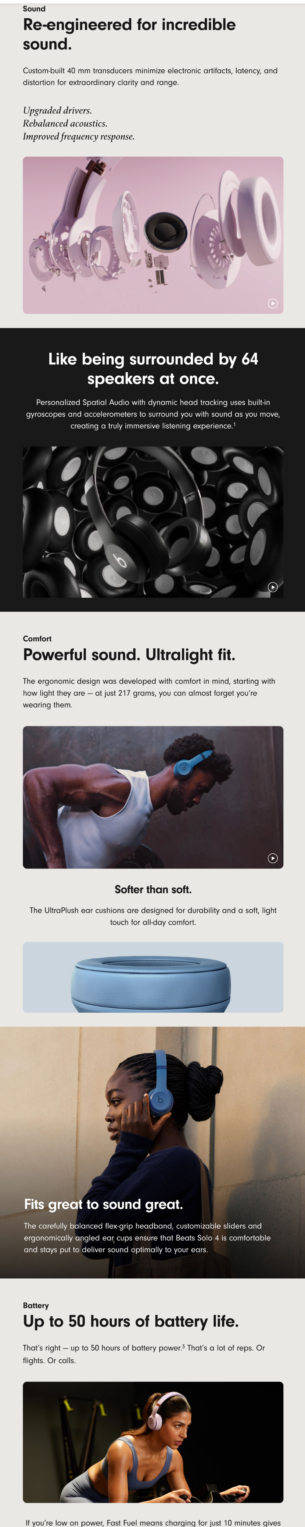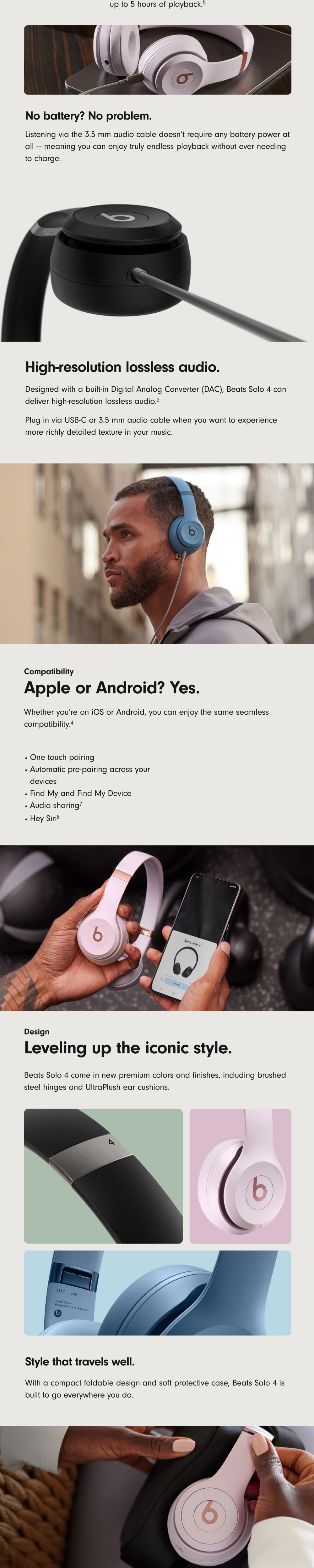 Upgraded Beats Solo 4 headphones: ️New 40mm drivers for clearer sound and a wider range ️USB-C port ️3.5mm port supports 50 hours of battery life, up 10 hours from previous ️Quick charge (5 hours of playback in 10 minutes)️Bluetooth 5.3 supportFind me iOS support!