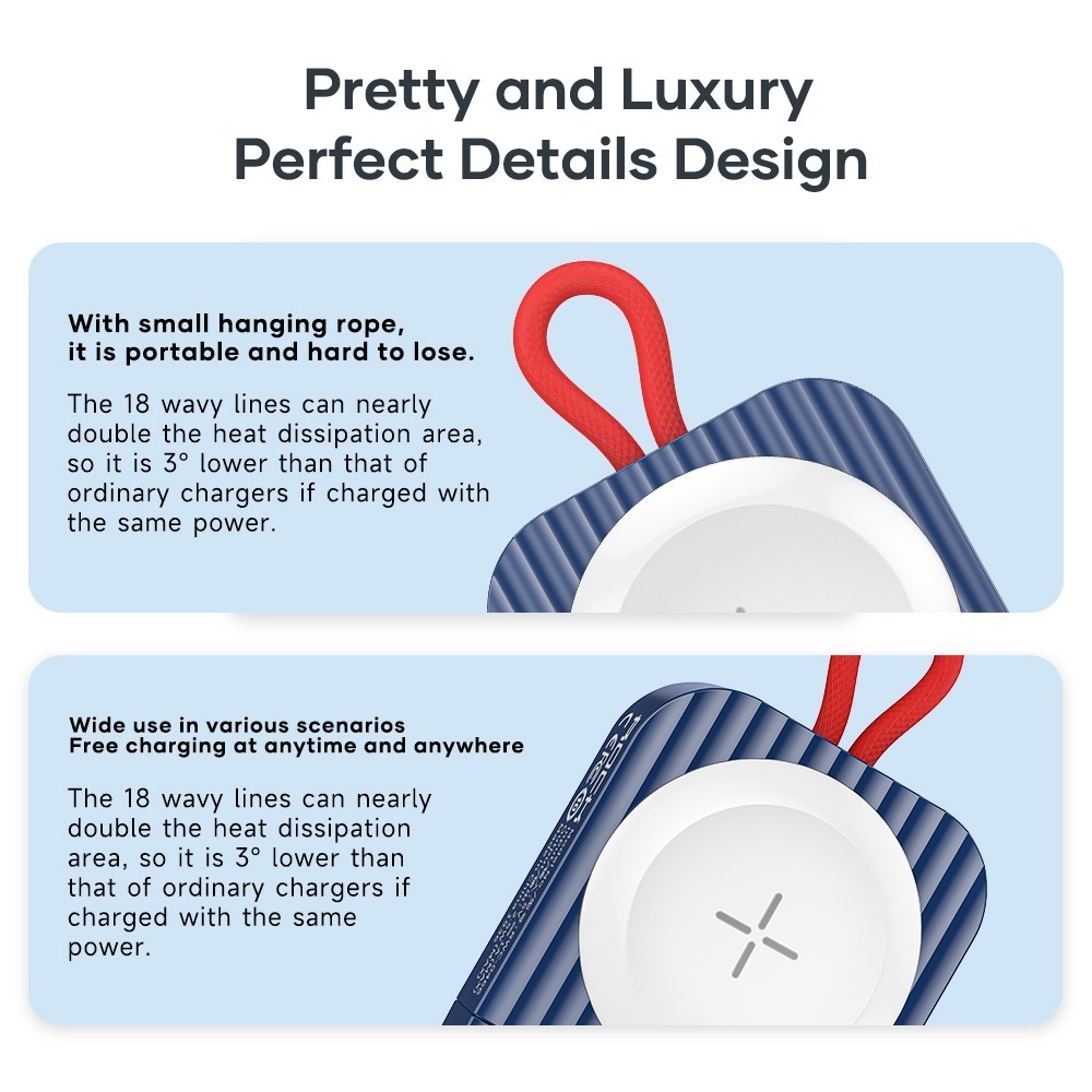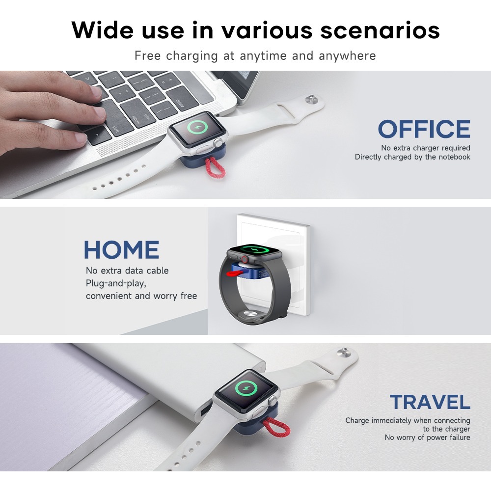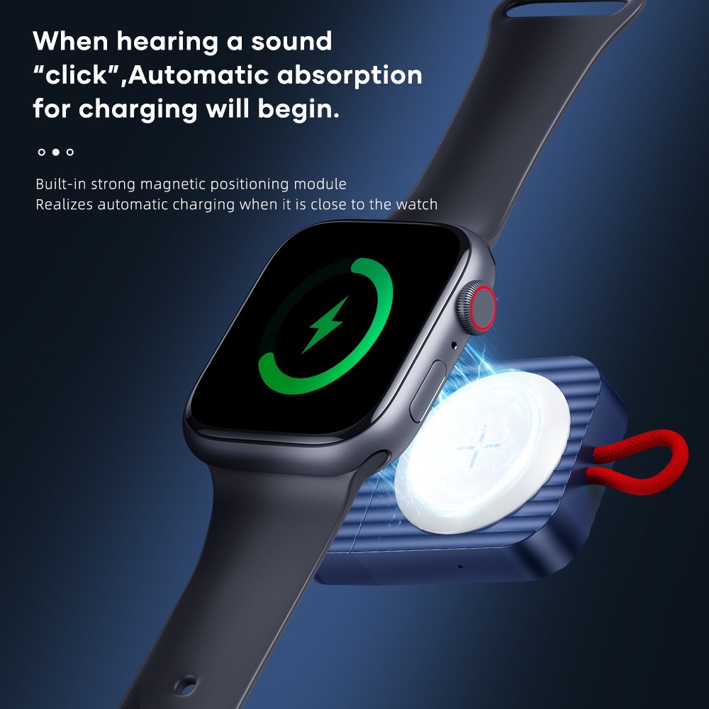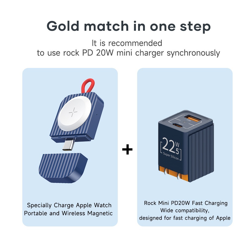 Rock Mini Portable Magsafe Watch Charger is a wireless charger compatible with Apple watch 1-5 generations, contains magnetic positioning automatic adsorption, fully charged without heating. 2.5W high power charging, only 2.5 hours to be fully charged, and a soft light indicator, working status