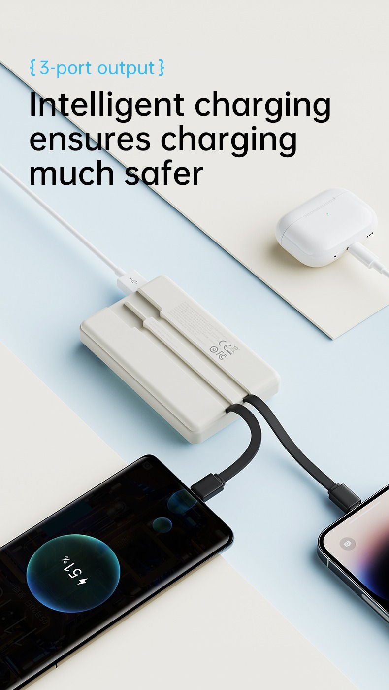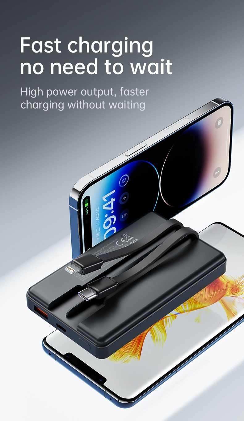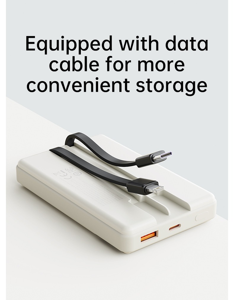 The Rock-P92 10000mAh Ultrabook with Cord PD20W is a stylish, self-contained data cable mobile power supply with an extra large 10000mAh battery. Simple design, easy to store, high elasticity cable body is flexible and tensile. It supports type-c, 22.5W fast charging, lightning, PD20W fast charging.