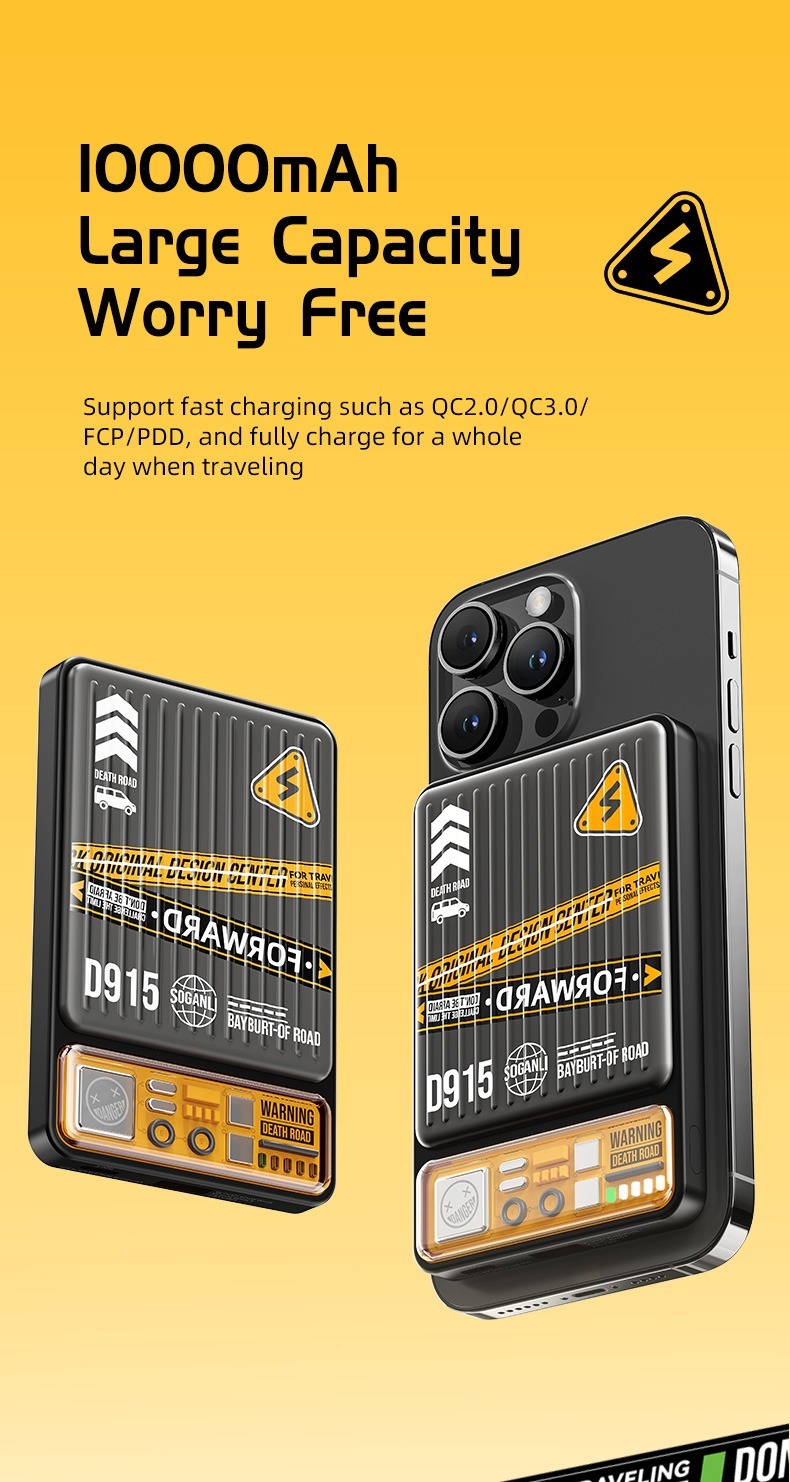 Rock Travel 10000mAh Ultra Slim Magnetic Mobile Power Supply is a mobile power supply designed for travel, ultra-thin design, high-density battery, super power 10000mAh. Wave stripe design increases heat dissipation; High-end chip, fast charging without heating, equipped with dual-port fast charging