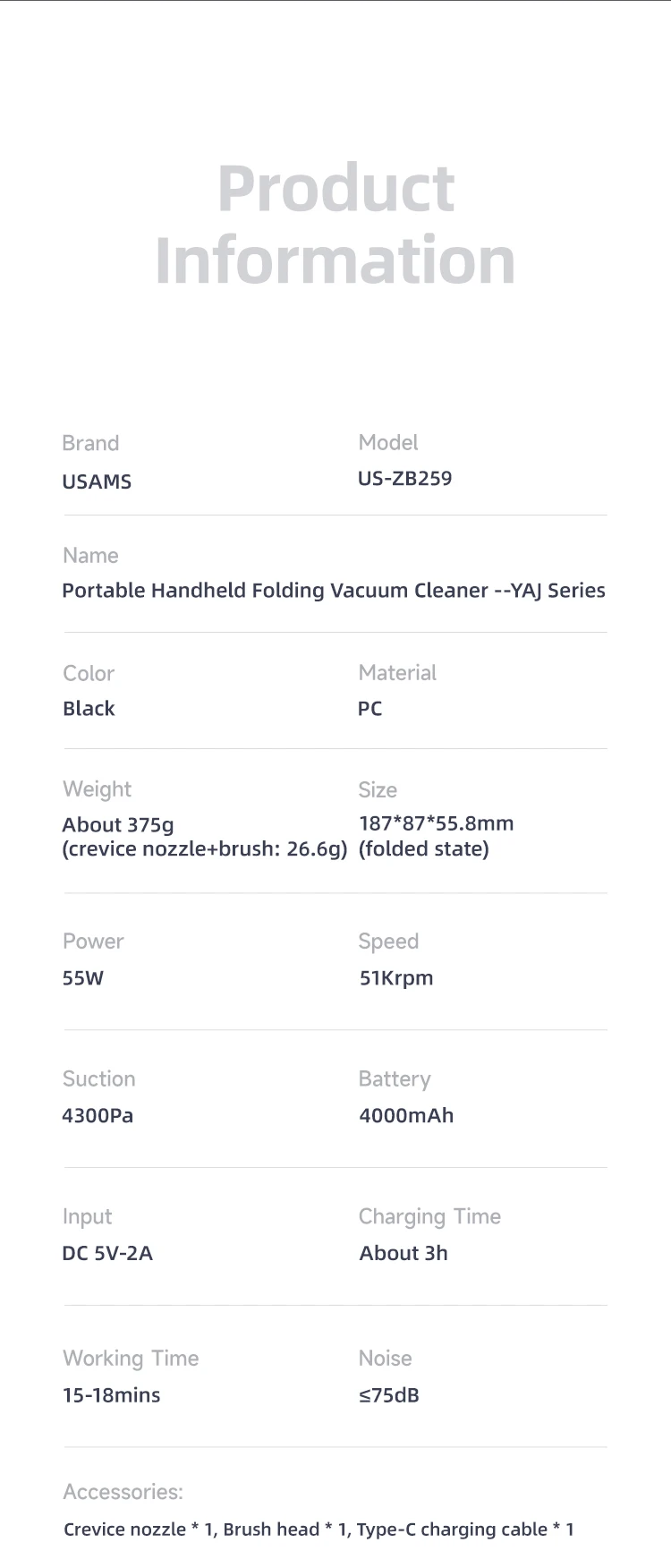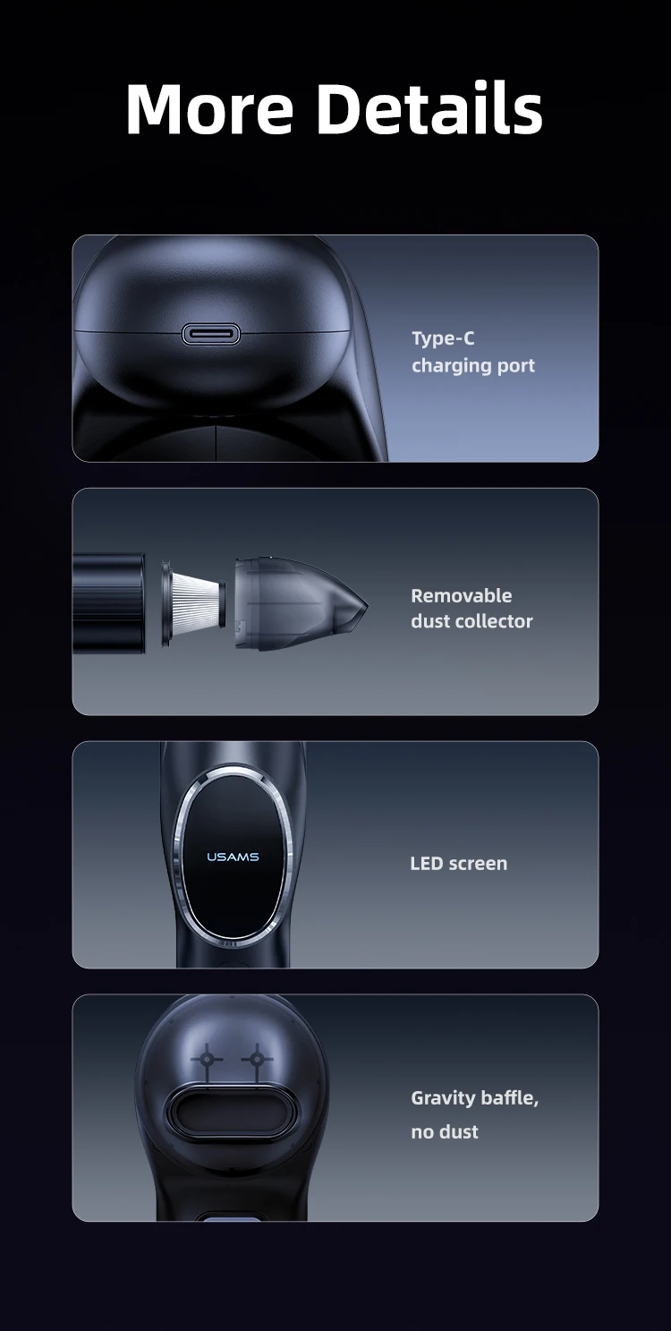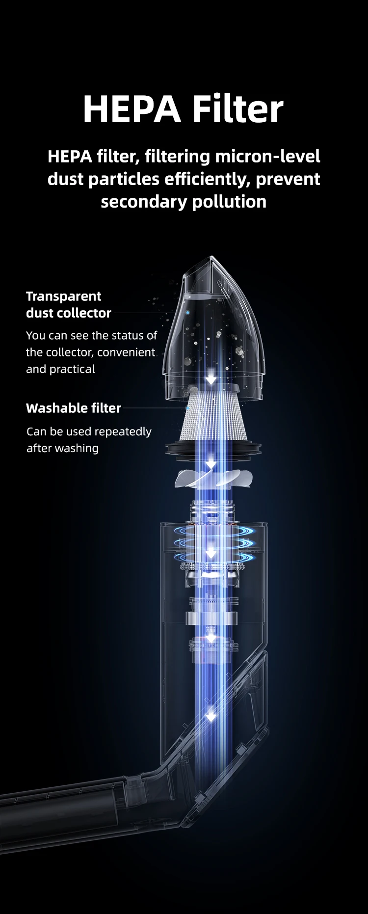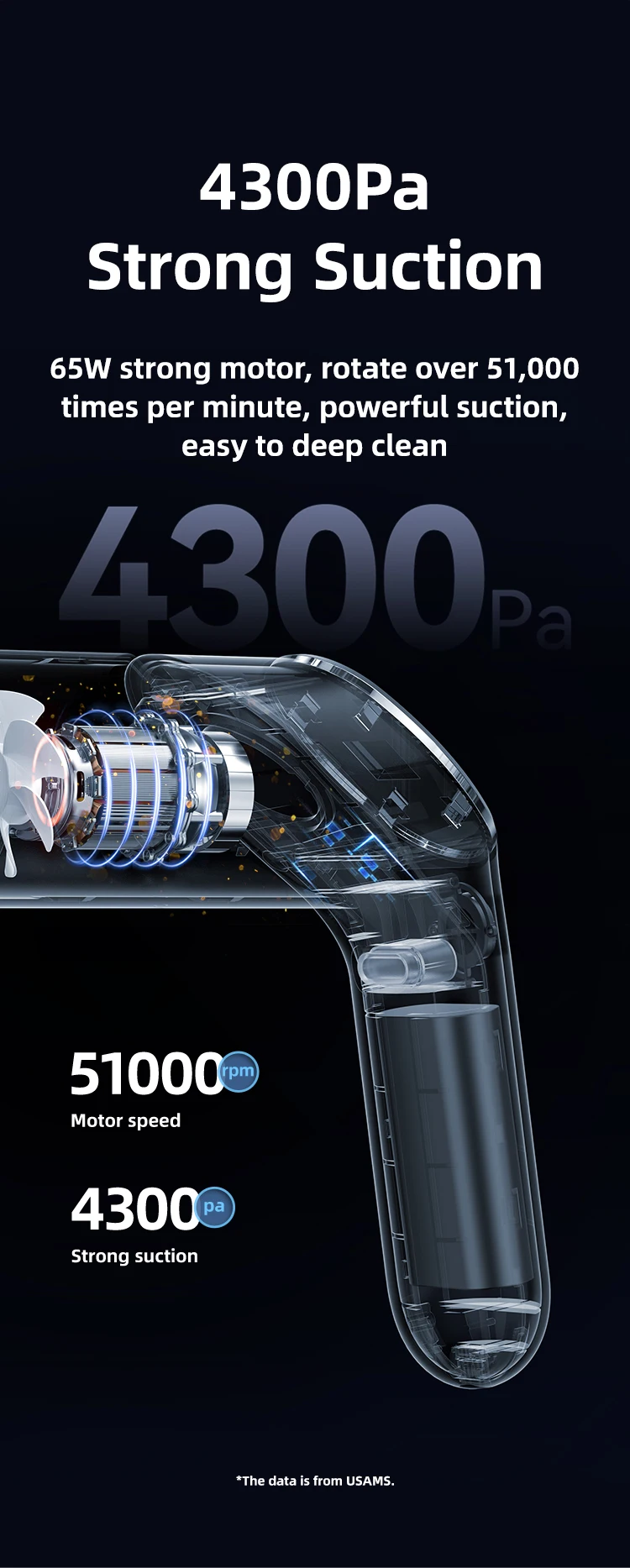 4300 rpm powerful suction power, quickly and deeply cleans all kinds of garbage
