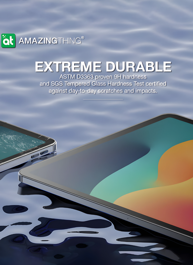 極致 9H 硬度 - ASTM D3363 認證] 經 SGS 鋼化玻璃硬度測試認證,可防劃痕和撞擊。