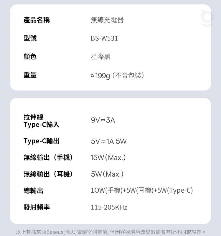 總輸出:10W(手機)+5W(TWS)+5W(Type-C)