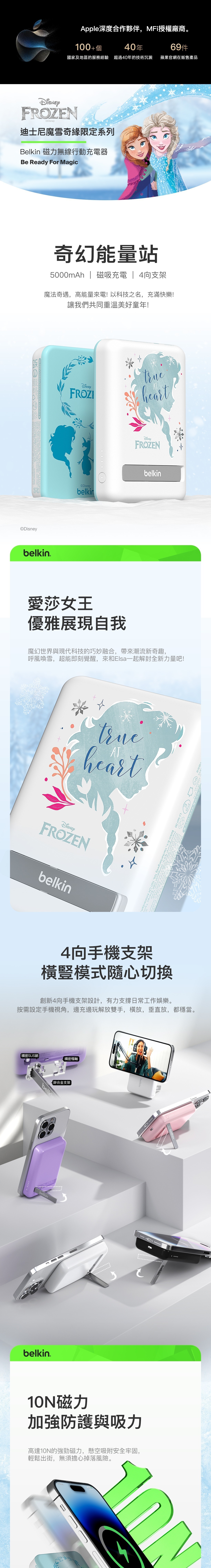 Belkin BoostCharge 磁力無線行動充電器 5K+支架 (魔雪奇緣版, 迪士尼系列)