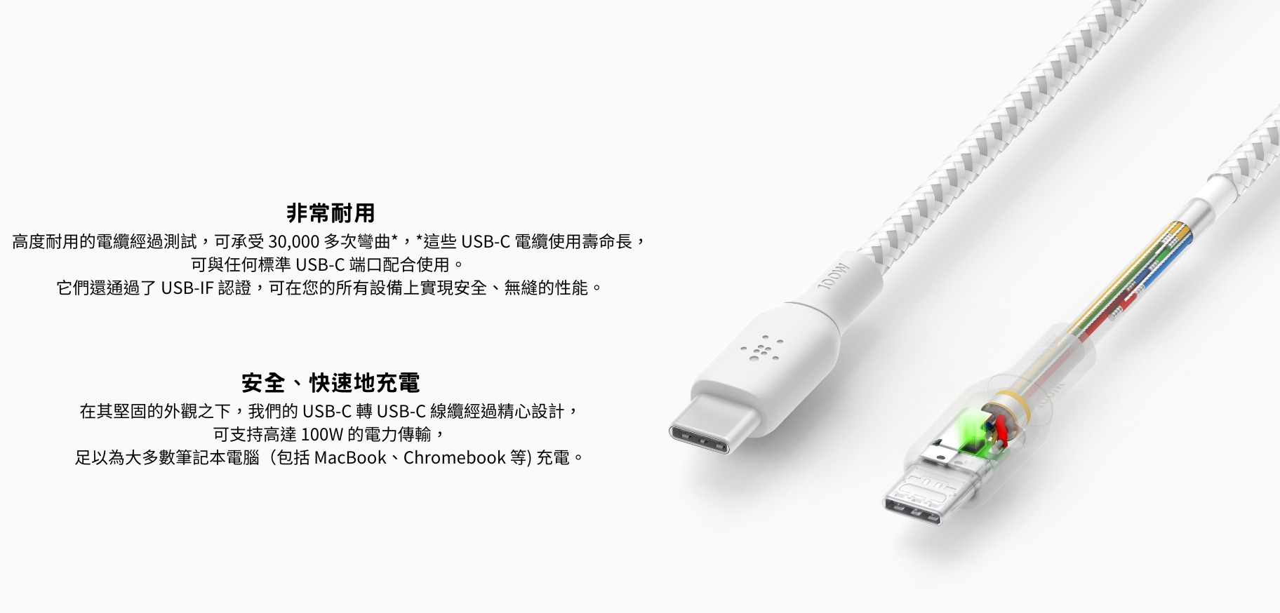 雙編織尼龍外部經過測試,可承受超過 30,000 次彎曲