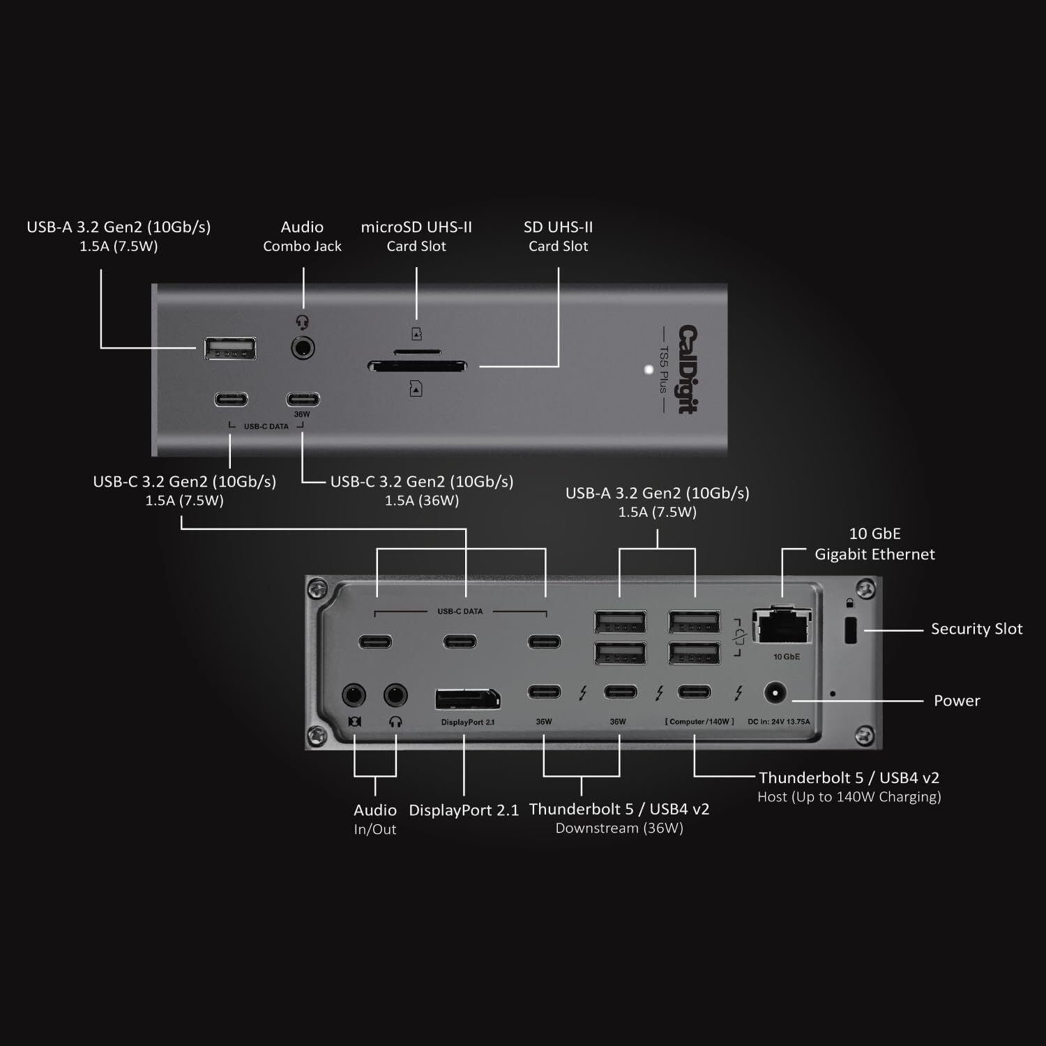(20端口,含4個120Gb/s Thunderbolt TS5,支援140W快充,36W USB-C,10GbE網路,雙USB控制器,支援三4K 144Hz顯示,PCIe 4.0達6200MB/s)
