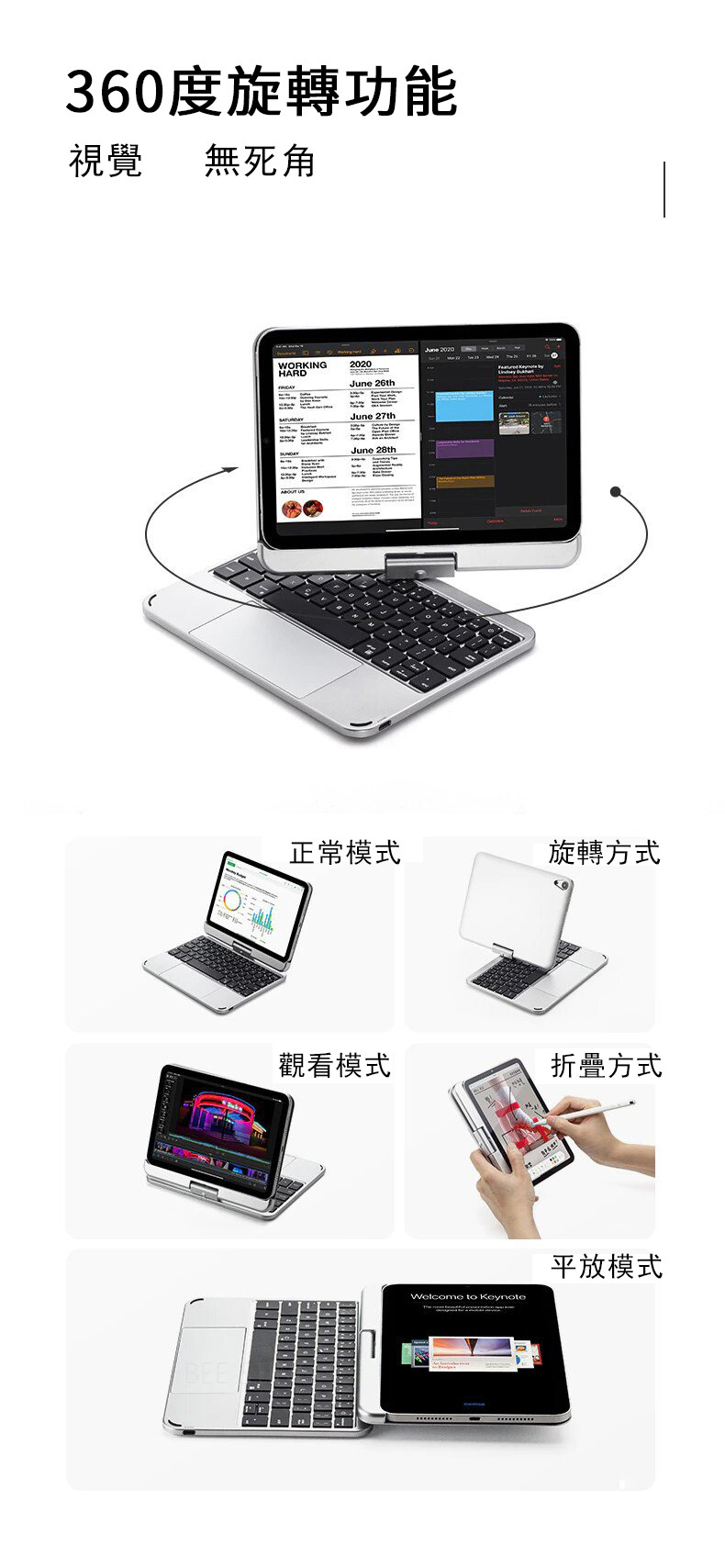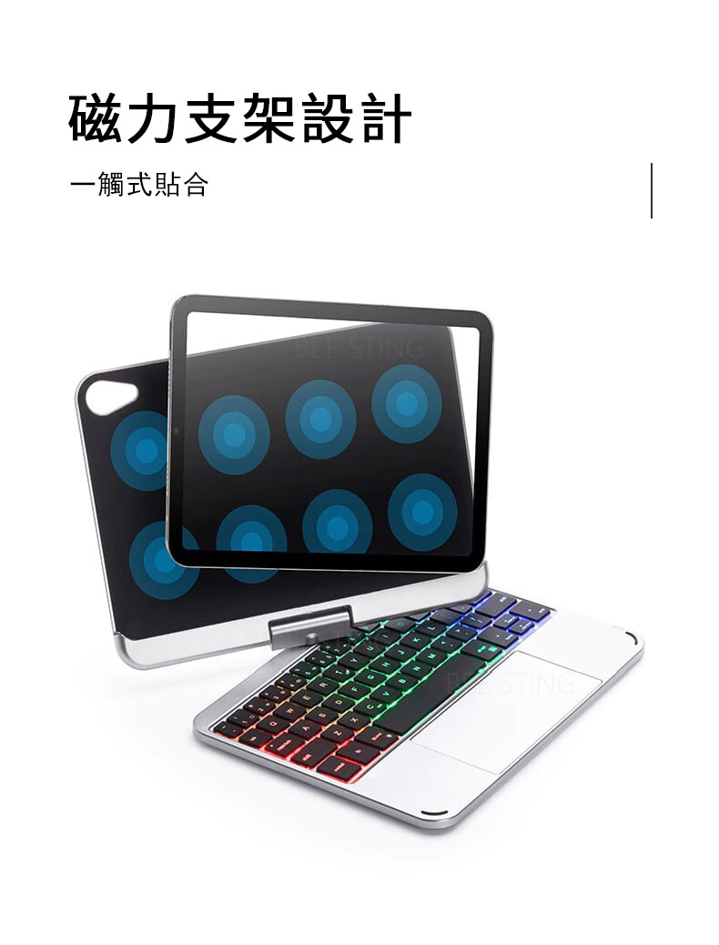 1.磁懸浮支架設計,可360°旋轉的魔術鍵盤