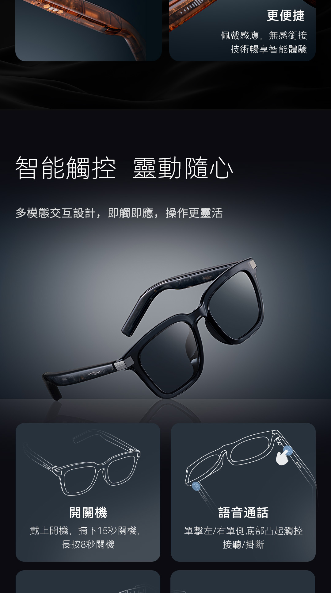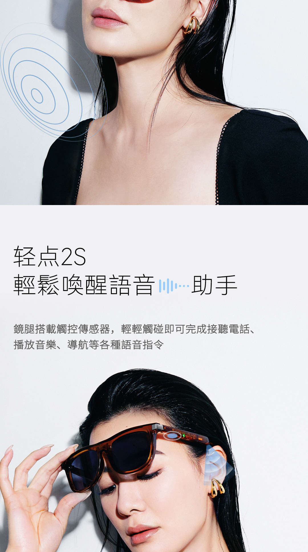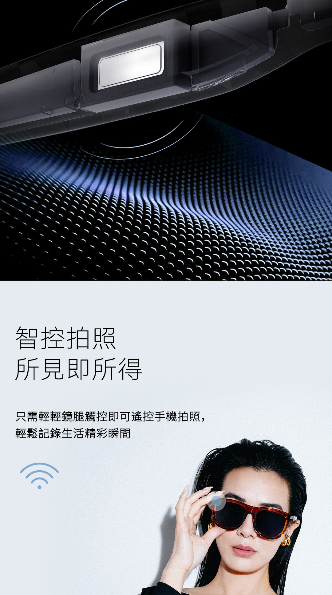 輕觸鏡腿按鍵,輕鬆操控手機拍照,隨時記錄精彩瞬間。