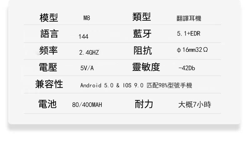 M8 即時翻譯,帶音頻,無線,藍牙 智慧翻譯雷射耳機
