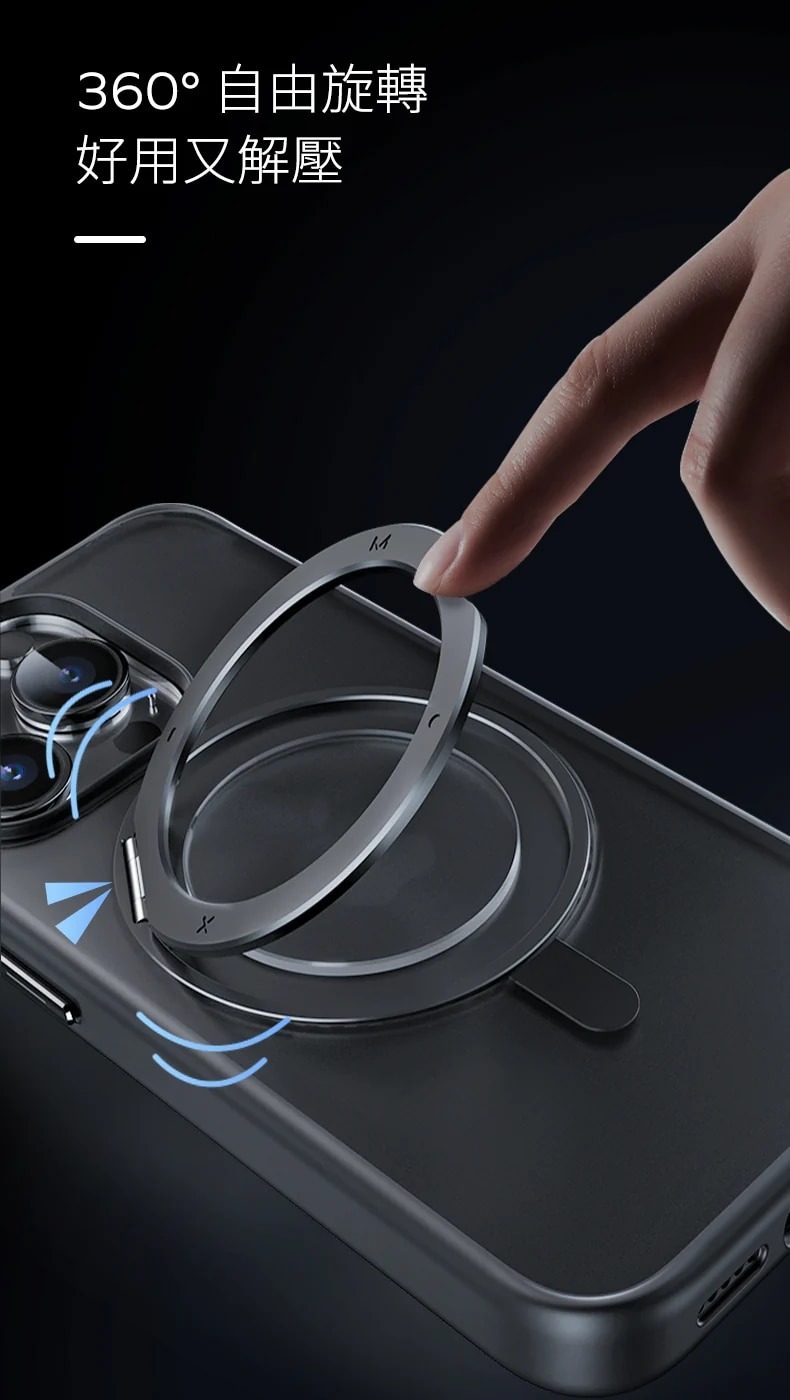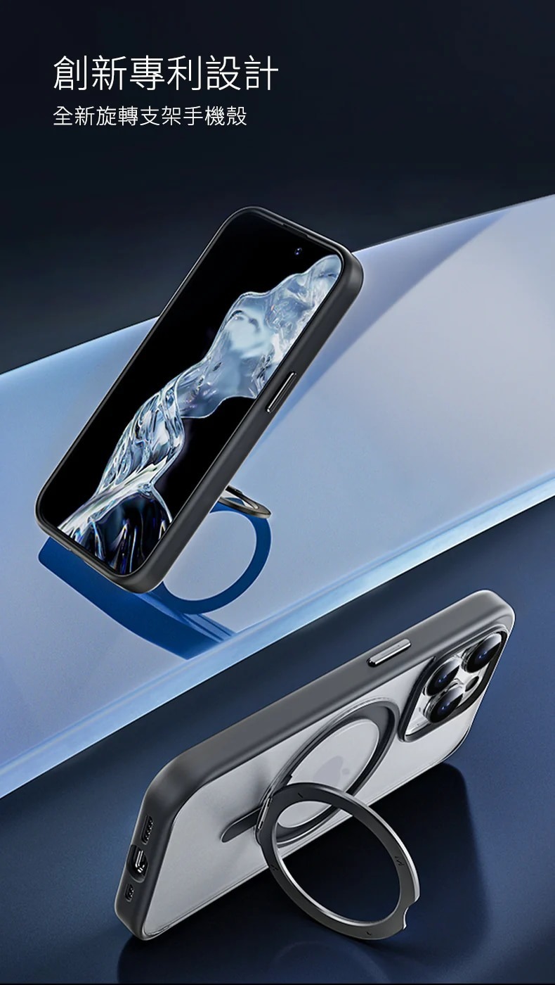 專利設計 可旋轉支架 ,磨砂背板,防指紋,不沾灰塵 加固防滑防震框架,防止 iPhone 跌落