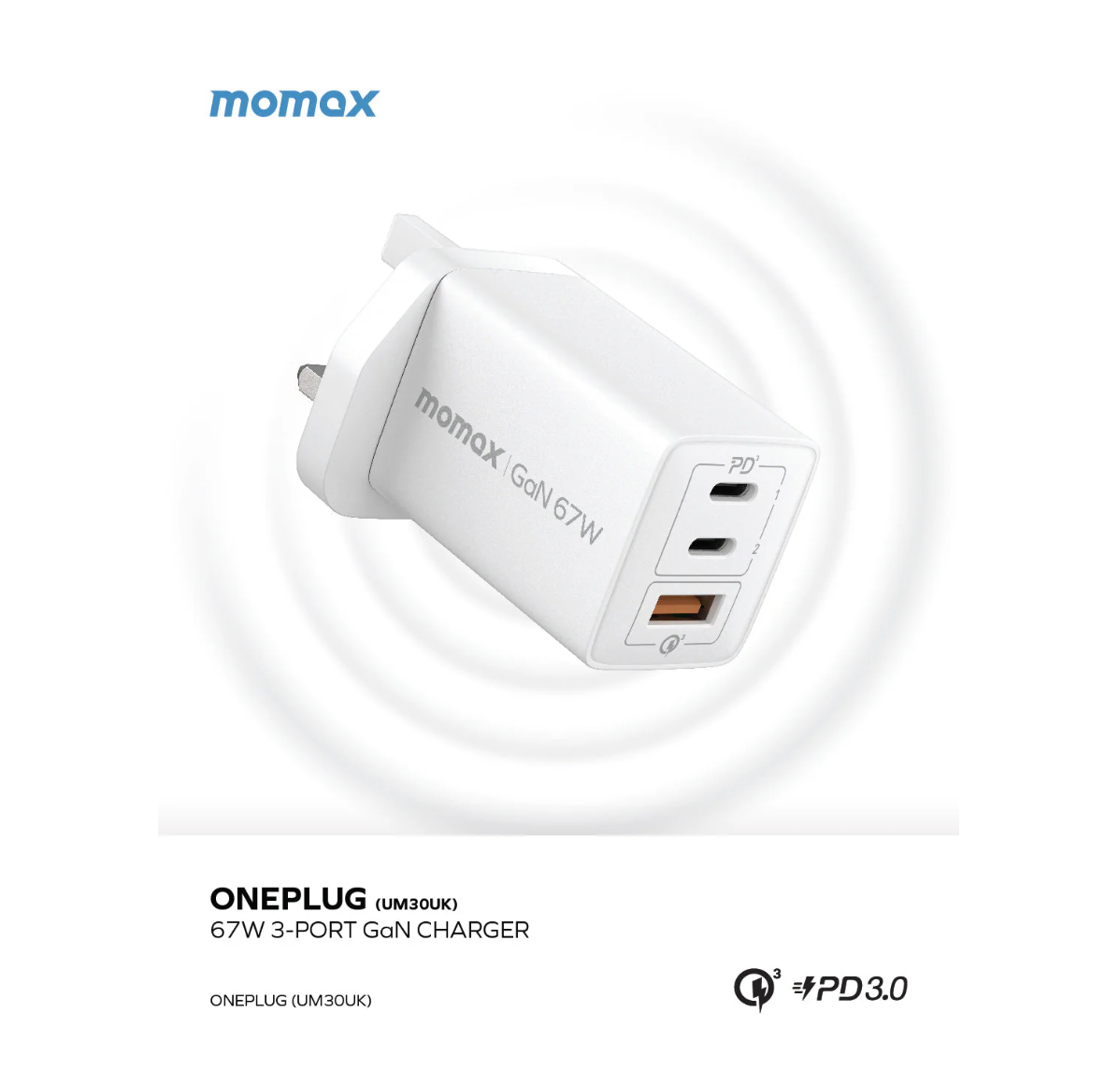採用第五代GaN技術,小巧的尺寸帶來強大的充電功率。 67W支援筆記型電腦、平板電腦、交換器等各種高功率設備。它可以同時為三台設備充電,讓你充滿電。