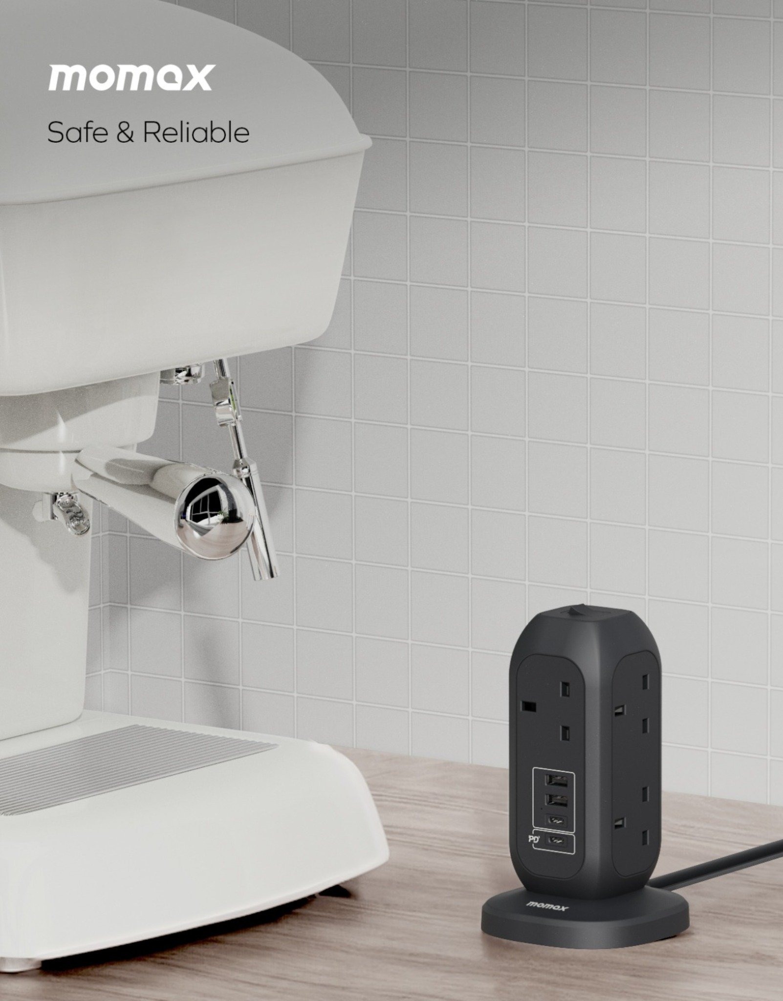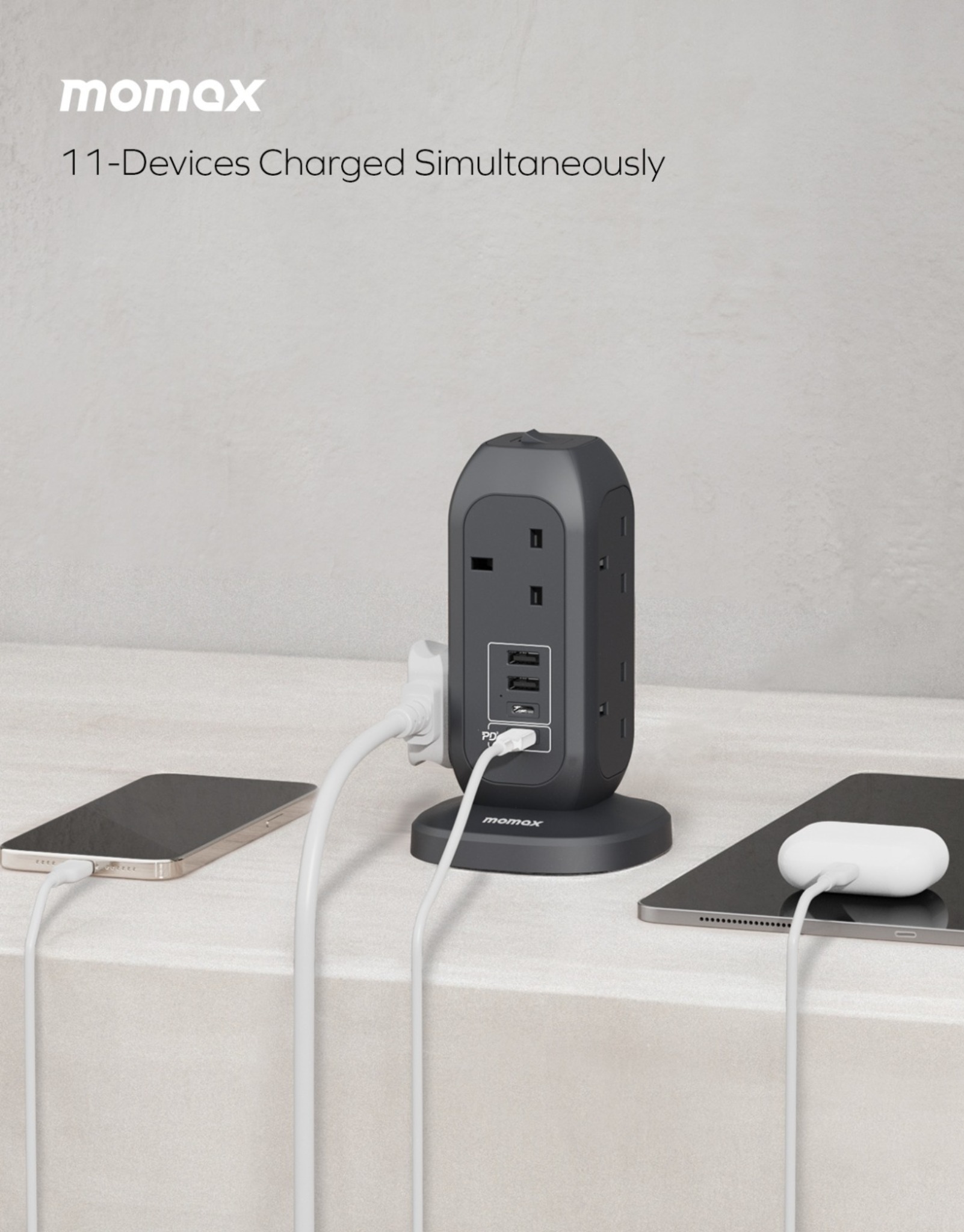 慳位充電快,安全可靠。US18帶有7個AC插頭和4個快充USB 端口,其中 1個更支援PD3.0 USB-C 端口。 提供高速充電性能並為您的設備實現快速充電。 直立式設計可以幫助您節省家中的空間,作為家中多種家電和電子產品的充電樞紐,可以同時為多達11台設備提供穩定和快速的功率輸出