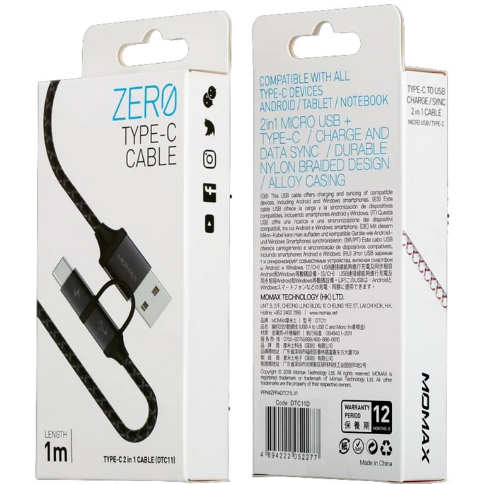 此2合1連接線可以給USBA和USBC的設備提供充電和同步資料.