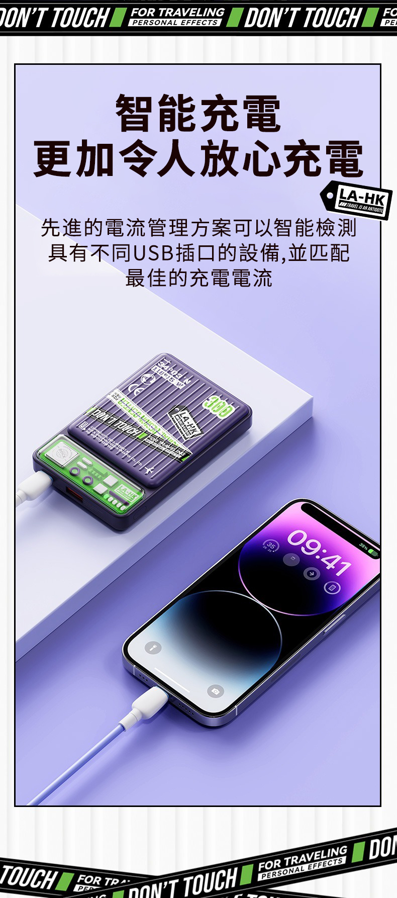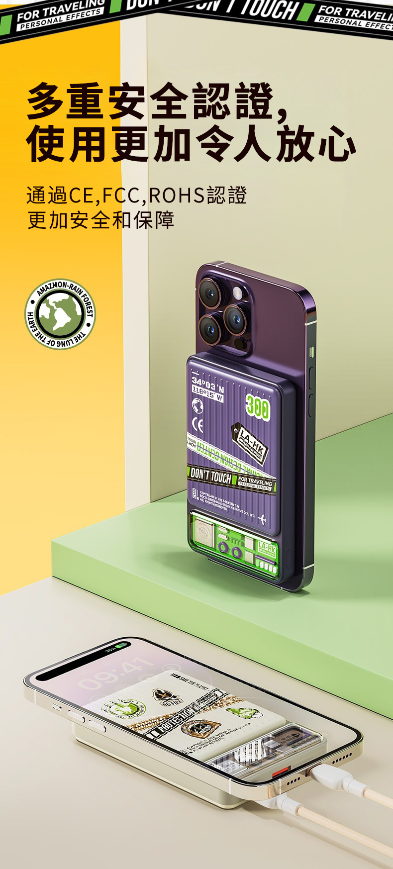 Rock 旅行專用 10000mAh超薄磁吸行動電源是一款專為旅行而設計的行動電源,超薄設計,高密度電池,超大電量10000mAh。波浪條紋設計增加散熱;高階晶片,快速充電不發熱,配有雙口快充,Type-c、USB-A以及Magsafe 充電。小型輕巧,手態舒適,方便攜帶,是你的旅行必備品。