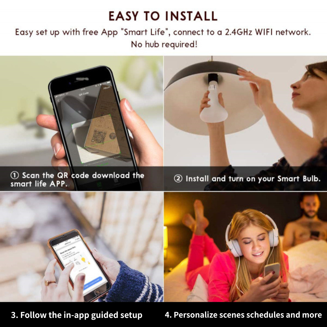 透過 HomeKit 進行遠端控制 透過 2.4g Hz wifi 連線 您可以從任何地方控制燈泡。