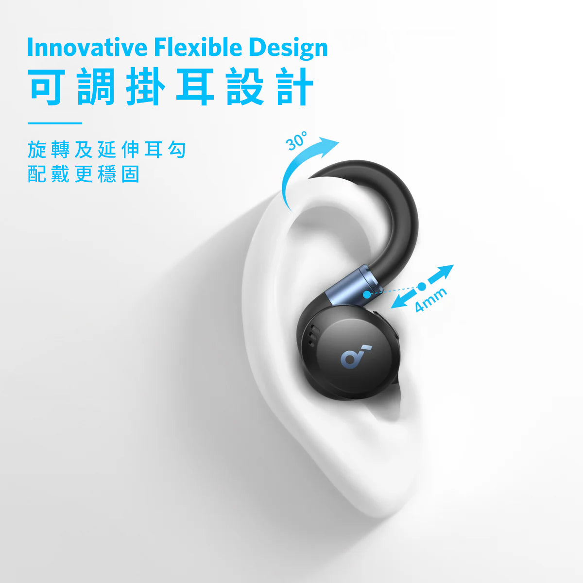特設耳勾可旋轉最多30°及延伸4mm,確保舒適配戴及穩固