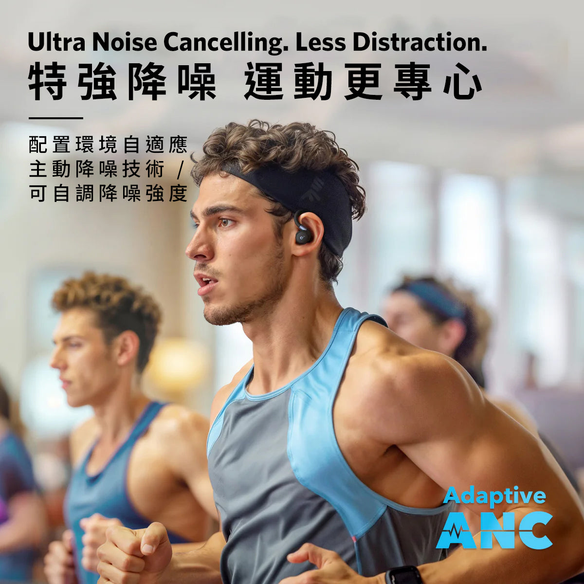 Sport X20配置強勁的降噪效果,讓嘈吵的健身室瞬間變成寧靜的空間。配置環境自適應主動降噪技術,因應環境而自動調節,或手動調節降噪強度,讓你更專注於鍛練當中。