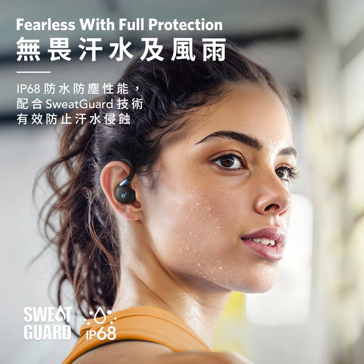 soundcore的SweatGuard技術參考潛水艇設計,配合IP68防水防塵規格,避免內部部件因汗水入侵而損壞。
