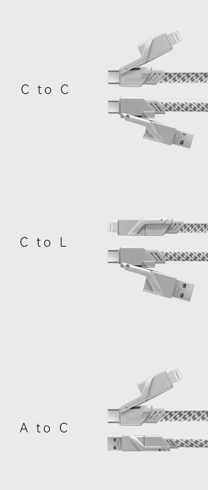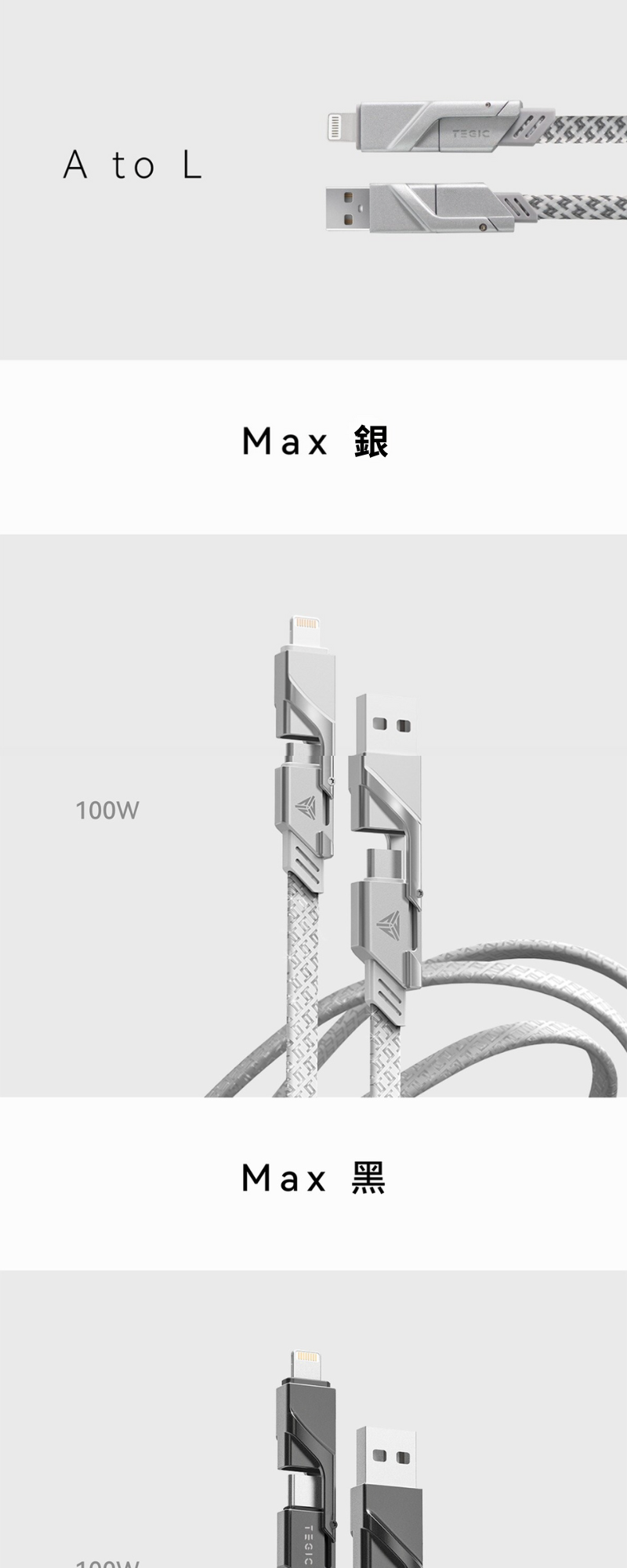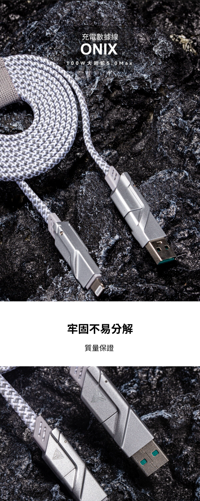 TEGIC ONIX 5.0 MAX 四合一數據線 黑色,銀色 (適用於所有iPhone,iPad 及MacBook) 100W 1.5米