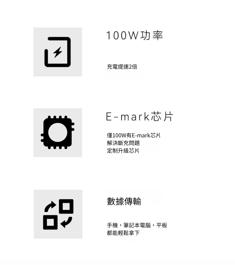 - 100W MAX 充電功率和 480 Mbps 數據傳輸速度