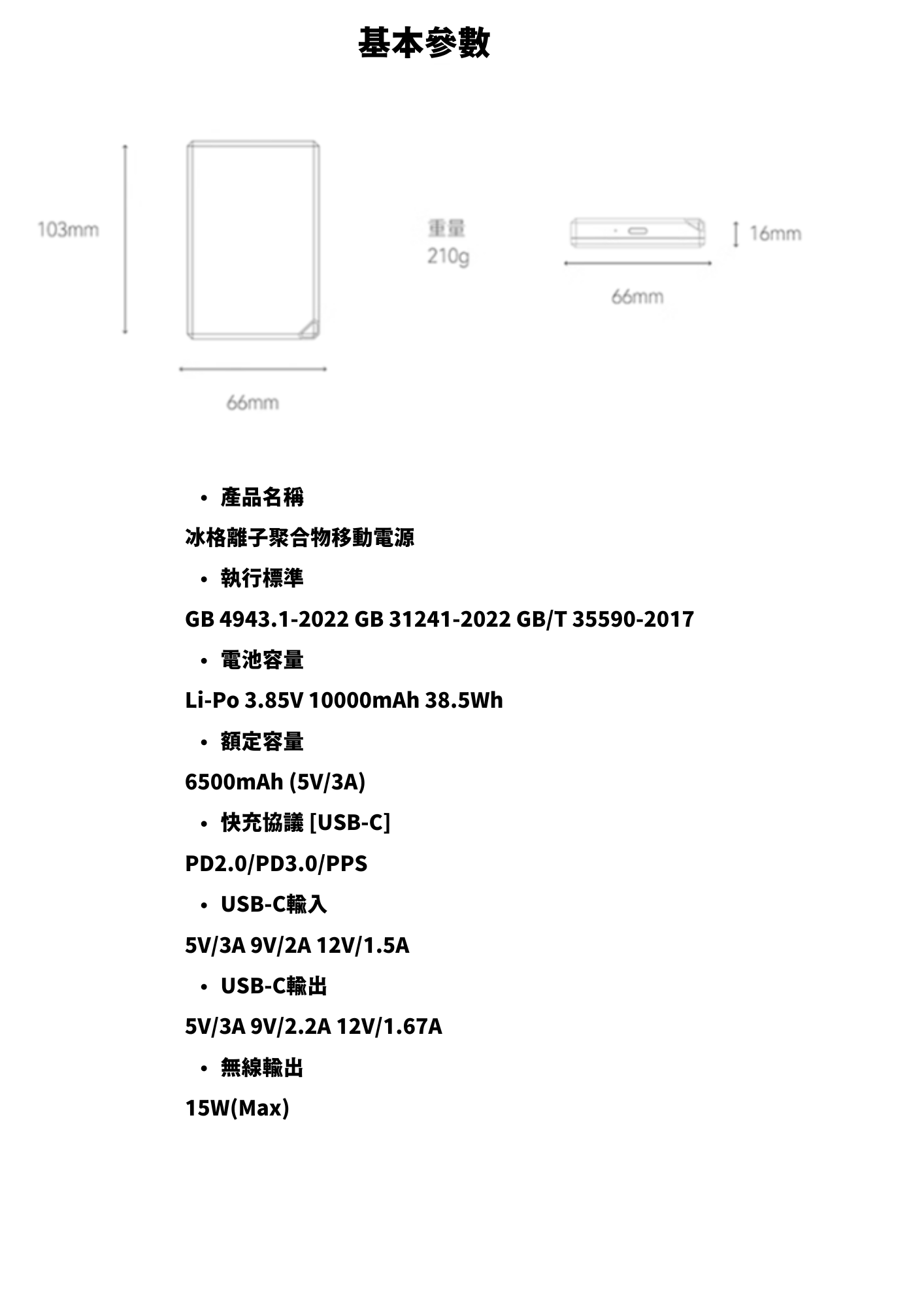 10000 mAh 大容量行動電源
