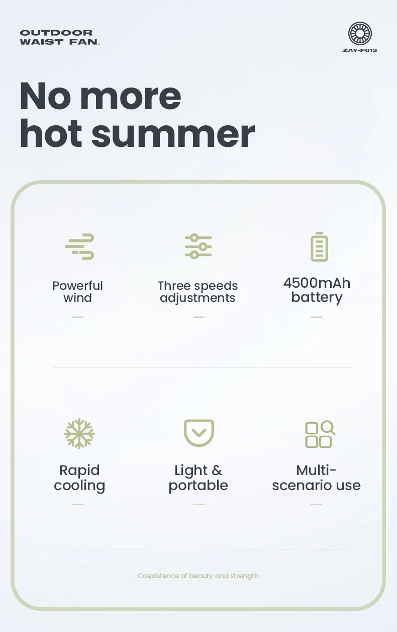新款輕便掛腰USB充電風扇(黑/綠/白)
