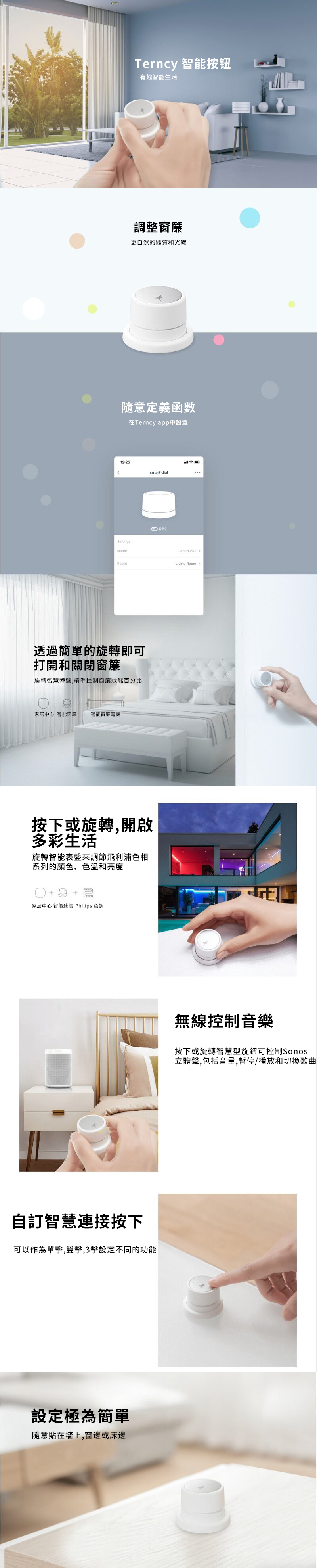 按下或旋轉智能按鈕以控制Sonos立體聲,包括音量,暫停/播放和切換歌曲。