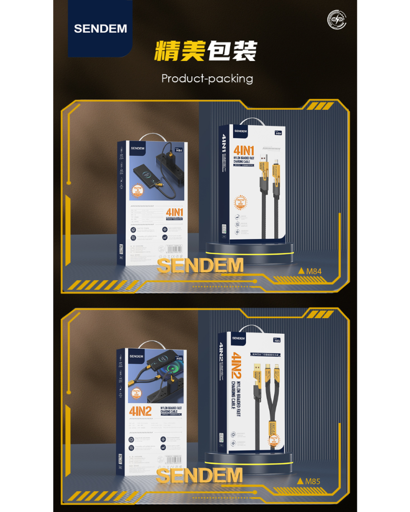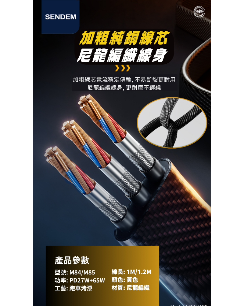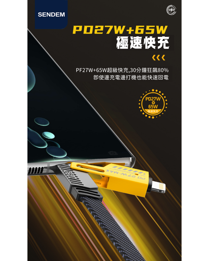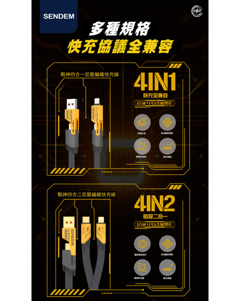 SENDEM 戰神系列 4合1 / 4合2 尼龍編織快充數據線(PD 27W + 65W)